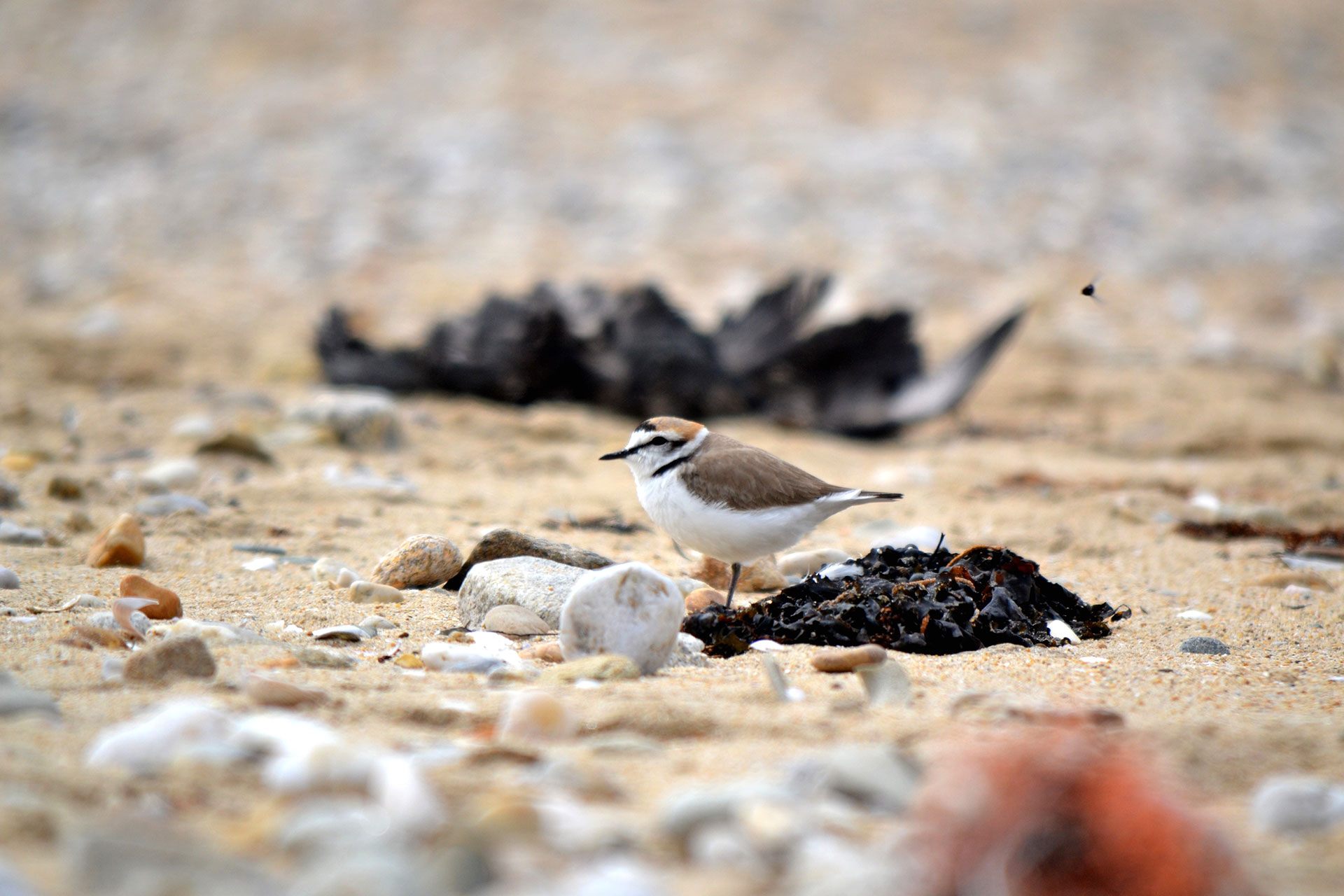 Pas évident de couver au sol dans un lieu aussi fréquenté… Le gravelot à collier interrompu doit composer avec toutes les activités humaines du littoral. Pour éviter de voir ses œufs menacés, une seule stratégie : partir en courant vers la mer pour attirer le prédateur à sa suite… Bon comédien, il peut même se faire passer pour une proie facile en simulant une aile cassée !