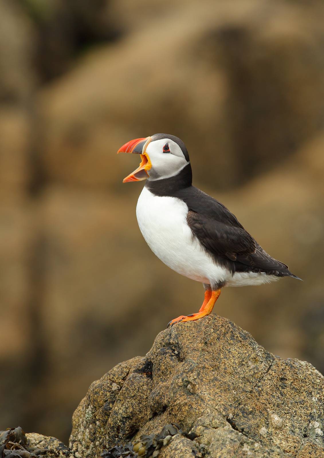 Le macareux moine est un petit alcidé, c’est à dire qu’il appartient à la famille des pingouins même si, avec son bec massif, il ressemble à un perroquet des mers…