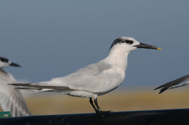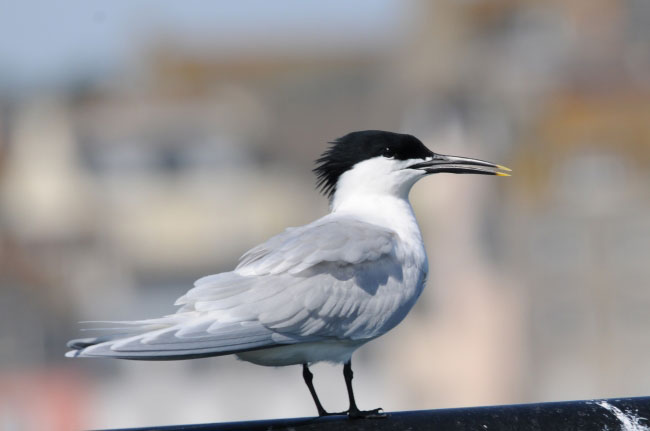 Les jeunes de l’année portent des marques foncées en forme de chevrons sur le dos. À distance, vous pourrez identifier la sterne caugek grâce à son cri râpeux caractéristique mais aussi en l’observant pêcher : elle plonge sur ses proies après un vol stationnaire.
