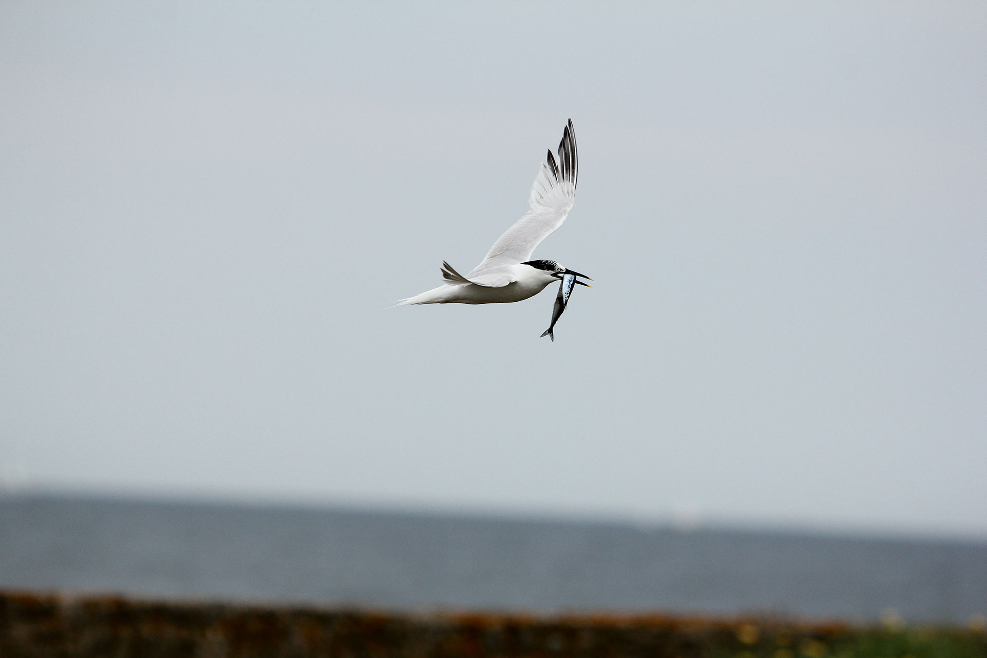 Dans la famille des sternes, la sterne caugek est plutôt de grande taille.