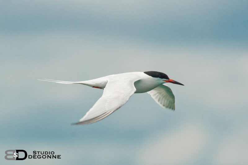 En vol, vous remarquerez les filets extrêmement longs de sa queue qui la distinguent des autres sternes. Elle est aussi repérable par sa couleur plus claire, globalement blanche, avec une nuance gris pâle sur le manteau.