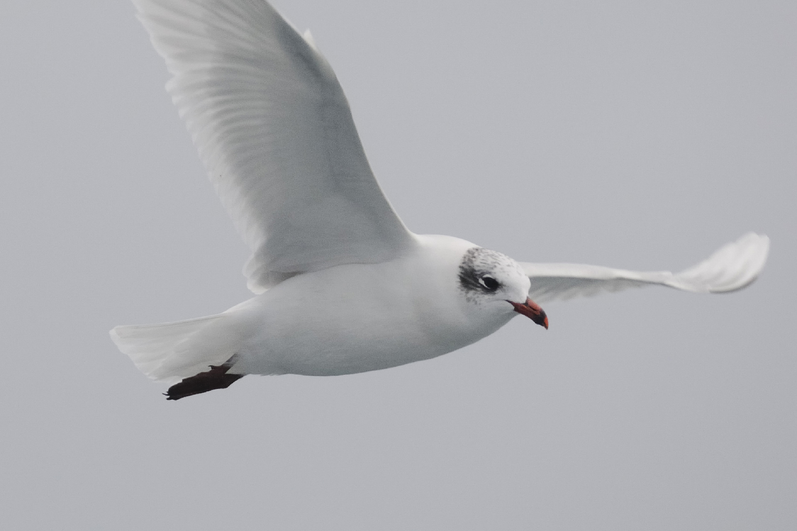 Comme de nombreuses autres espèces de mouettes, la mouette mélanocéphale arbore un capuchon sur la tête en période nuptiale ; sauf que dans son cas, cette mue originale lui a donné son nom puisque mélanocéphale signifie littéralement « à tête noire ». Elle est remarquable également par une certaine retenue que l’on perçoit dans son cri : bref, ascendant puis descendant, il est émis d’un ton légèrement triste… Elle s’exprime surtout sur les aires de reproduction mais reste relativement silencieuse le reste du temps.